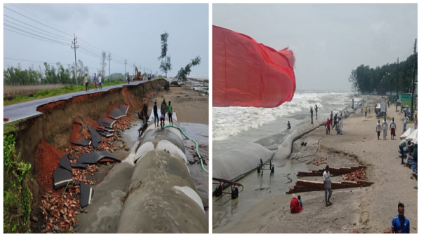 সাগরের ঢেউয়ের তোড়ে কক্সবাজার-টেকনাফ মেরিন ড্রাইভ সড়কে ভাঙন ধরেছে। ছোট-বড় ১০টি জায়গায় এই ভাঙন তীব্র আকার ধারণ করেছে। ভেঙে যাওয়া অংশ এখনই মেরামত করা না হলে ব্যাপক ভাঙনে মেরিন ড্রাইভ
