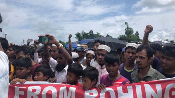 নাগরিকত্ব নিয়ে নিরাপদে মিয়ানমারে নিজ গ্রামে ফেরার দাবিতে কক্সবাজারের উখিয়া শিবিরে সমাবেশ করেছে রোহিঙ্গারা। বিশ্ব শরণার্থী দিবস উপলক্ষে গতকাল মঙ্গলবার বিকালে উখিয়া লম্বাশিয়া ১ নম্বর ক্যাম্পে এ সমাবেশ হয়। শিশু-কিশোরসহ