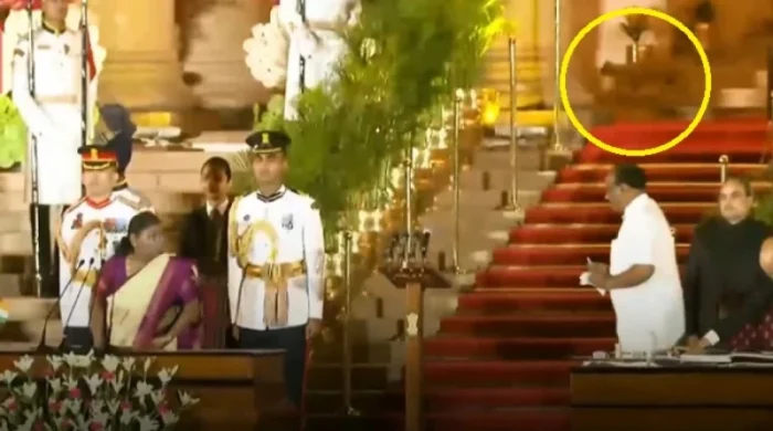 ভারতের প্রধানমন্ত্রী হিসেবে রবিবার শপথগ্রহণ করেন নরেন্দ্র মোদি। তার শপথগ্রহণ অনুষ্ঠানে দেশ-বিদেশের প্রায় ৮ হাজার অতিথি যোগদান করেন। তবে ভারতীয় রাষ্ট্রপতি ভবনের এসব তারকার মাঝে এক অনাহূত রহস্যময় প্রাণীও ছিল।