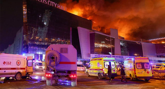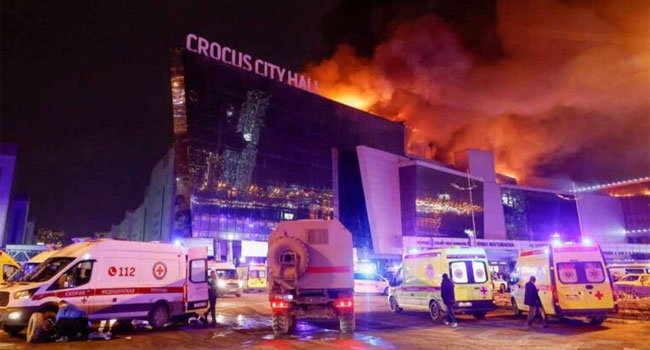 রাশিয়ার রাজধানী মস্কোতে একটি কনসার্ট হলে বন্দুকধারীদের হামলায় অন্তত ৬০ জন নিহত হয়েছে। এছাড়া আহত হয়েছে আরো শতাধিক লোক। শুক্রবার মস্কোর ক্রকাস সিটি হলে এই ঘটনা ঘটে। ইসলামিক স্টেট (আইএস)