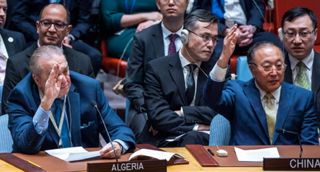 গাজা উপত্যকায় অস্ত্রবিরতি নিয়ে জাতিসঙ্ঘ নিরাপত্তা পরিষদে আনা মার্কিন প্রস্তাবটিতে রাশিয়া ও চীন ভেটো দেয়ার ফলে তা বাতিল হয়ে গেছে। রাশিয়া ও চীনের এই উদ্যোগকে স্বাগত জানিয়েছে গাজাভিত্তিক ফিলিস্তিনি প্রতিরোধ