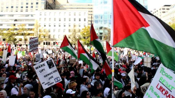 গাজাভিত্তিক ফিলিস্তিনি প্রতিরোধ আন্দোলন হামাস ও ইসরাইলের মধ্যে চলমান সংঘাত নিয়ে সারা বিশ্বব্যাপী চলছে বিক্ষোভ। এরই মধ্যে গতকাল শনিবার যুক্তরাষ্ট্রের হোয়াইট হাউসের বাইরে হাজার হাজার মানুষ বিক্ষোভ করেছে। শনিবার কাতারভিত্তিক