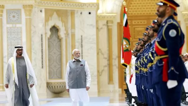 ফ্রান্সের পর এবার সংযুক্ত আরব আমিরাত সফর শেষ করলেন ভারতের প্রধানমন্ত্রী নরেন্দ্র মোদি। শনিবার সংযুক্ত আরব আমিরাতের প্রেসিডেন্ট মোহাম্মদ বিন জায়েদ আল-নাহিয়ানের সাথে আলোচনার পর তিনি ভারতীয় রুপি ও সংযুক্ত