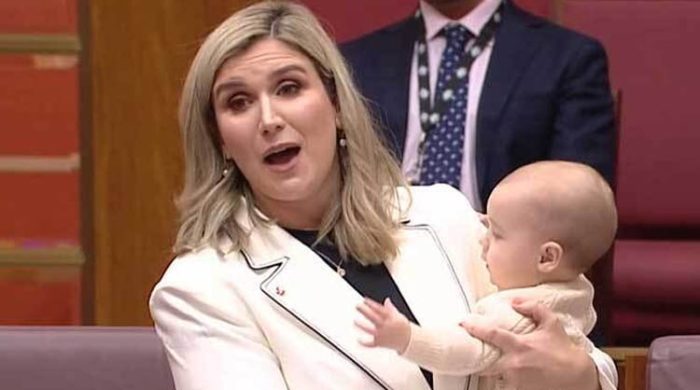 নিজের সদ্যজাত সন্তান কোলে নিয়ে পার্লামেন্টে ভাষণ দিয়েছেন এক মা ও লেবার পার্টির সিনেটর। অস্ট্রেলিয়ার এই সিনেটরের নাম করিন মুলহোল্য়ান্ড। তিনি যখন সন্তানকে কোলে নিয়ে ভাষণ দিচ্ছেন, তখন সুর করে