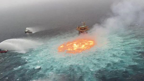 বিষ্ময়কর হলেও সত্যি! সাগরের বুকে দাউদাউ করে জ্বলছে আগুন। আগ্নেয়গিরির লাভার মতো আগুন সাগরের তলদেশ থেকে পানির ওপরে ভেসে উঠছে। টানা পাঁচ ঘণ্টার পর সেই আগুন নিয়ন্ত্রণে আনা সম্ভব হয়েছে।