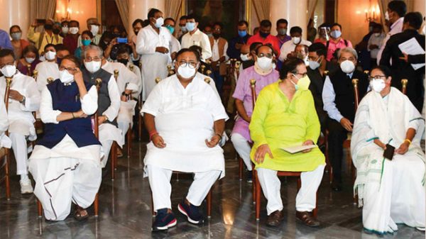 তৃতীয়বারের মতো মুখ্যমন্ত্রী হওয়া মমতা বন্দ্যোপাধ্যায়ের মন্ত্রিসভার শপথগ্রহণ হচ্ছে সোমবার। মমতা রাজভবনে মন্ত্রীদের যে তালিকা পাঠিয়েছেন সেখানে ১৭ জন নতুনকে দেখা গেছে। ইন্ডিয়া টুডে জানিয়েছে, করোনা পরিস্থিতির কারণে শপথগ্রহণ অনুষ্ঠানে