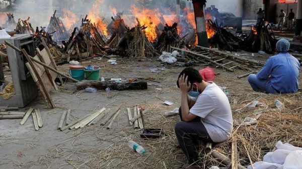 বিপর্যস্ত ভারতের রাজধানী দিল্লিতে করোনাভাইরাসে আক্রান্ত হয়ে মারা যাচ্ছেন অনেকে। সেই মৃতদেহগুলোর কোনো কোনোটা সৎকার করতে সময় যাচ্ছে প্রায় একদিনের মতো। শ্মশানের দরজায় দরজায় ঘুরে জায়গা না পেয়ে কেউ কেউ