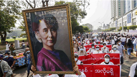 মিয়ানমারের ক্ষমতাচ্যুত নেতা অং সান সু চি ভিডিও কনফারেন্সিংয়ের মাধ্যমে গতকাল আদালতের এক শুনানিতে হাজির হয়েছিলেন। ১ ফেব্রুয়ারির সামরিক অভ্যুত্থানের পর সোমবারই প্রথম তার আইনজীবীরা তাকে দেখলেন। তার এক আইনজীবী