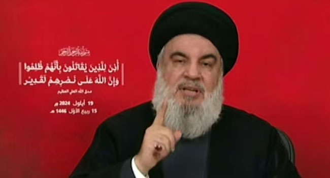 লেবাননভিত্তিক সশস্ত্র গ্রুপ হিজবুল্লাহর প্রধান হাসান নাসরাল্লাহ ইসরাইলের বিরুদ্ধে ‘কঠোর প্রতিশোধ’ গ্রহণের অঙ্গীকার করেছেন। এক ভাষণে বৃহস্পতিবার তিনি অবশ্য স্বীকার করেছেন, তাদের হাজার হাজার সক্রিয় কর্মীর যোগাযোগ ডিভাইসে বিস্ফোরণ ঘটানোয়