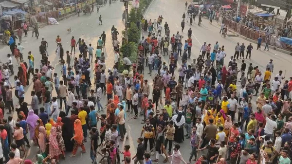 গাজীপুরে বেতন বাড়ানোর দাবিতে পোশাকশ্রমিকদের বিক্ষোভ চলাকালে রাসেল হাওলাদার নামে এক শ্রমিক নিহত হয়েছেন। সোমবার (৩০ অক্টোবর) ভোগড়াসহ আশপাশের এলাকার ঢাকা-ময়মনসিংহ মহাসড়কে এ ঘটনা ঘটে। নিহত রাসেল হাওলাদার নগরীর ডিজাইন