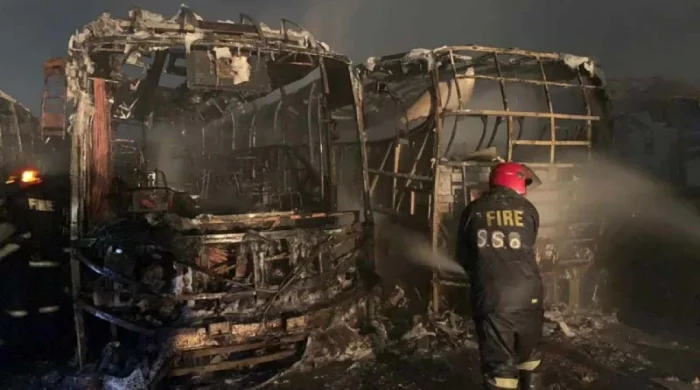 রাজধানীর ডেমরার ধার্মিকপাড়ায় গ্যারেজে থাকা লন্ডন এক্সপ্রেস পরিবহনের ভলভো বাসে লাগা আগুন নিয়ন্ত্রণে এসেছে। আজ সোমবার রাত ৯টা ৪৮ মিনিটেদের দিকে আগুন নিয়ন্ত্রণে আনেন ফায়ার সার্ভিসের কর্মীরা। তবে গ্যারেজে থাকা