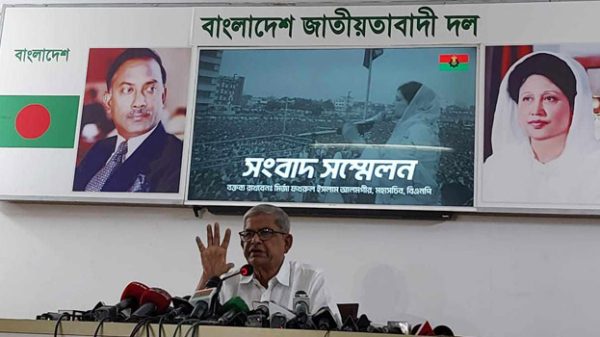 বিএনপি মহাসচিব মির্জা ফখরুল ইসলাম আলমগীর বলেছেন, সরকার বিরোধী মতের আন্দোলনে দিশেহারা হয়ে পড়েছে। জনতার ঐক্যবদ্ধ আন্দোলনে এই সরকারের বিদায় এখন সময়ের ব্যাপার মাত্র। রোববার (২০ আগস্ট) গুলশান বিএনপি চেয়ারপারসনের