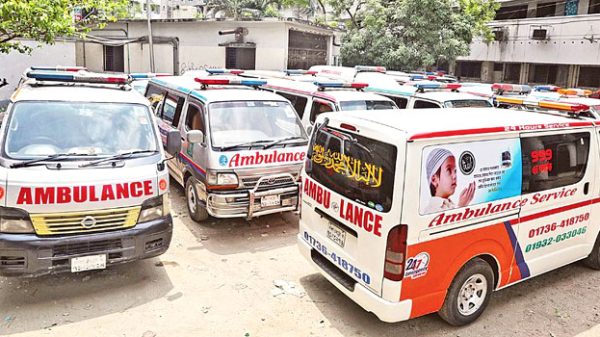 সারাদেশে অ্যাম্বুলেন্স চলাচল অনির্দিষ্ট সময়ের জন্য বন্ধের ঘোষণা দিয়েছে বাংলাদেশ অ্যাম্বুলেন্স মালিক কল্যাণ সমিতি। দেশের সব সড়ক ও সেতুতে অ্যাম্বুলেন্স চলাচলের জন্য টোল ফ্রি করাসহ ৬ দফা দাবি আদায়ে এ
