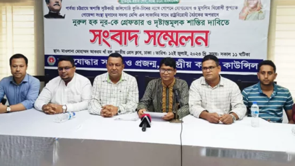 রাষ্ট্রবিরোধী ষড়যন্ত্রে লিপ্ত থাকার অভিযোগে গণঅধিকার পরিষদের একাংশের সভাপতি নুরুল হক নুরকে সাত দিনের মধ্যে গ্রেপ্তারের দাবি জানিয়েছে মুক্তিযোদ্ধার সন্তান ও প্রজন্ম কেন্দ্রীয় কমান্ড কাউন্সিল। এ সময়ের মধ্যে তাকে গ্রেপ্তার