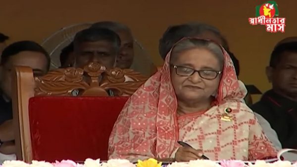 প্রধানমন্ত্রী শেখ হাসিনা ময়মনসিংহ সার্কিট হাউস মাঠে আওয়ামী লীগ আয়োজিত জনসভার মঞ্চে উপস্থিত হয়েছেন। আজ শনিবার বেলা ৩টার দিকে তিনি মঞ্চে ওঠেন। পরে জাতীয় সংগীতের মাধ্যমে জনসভার কার্যক্রম শুরু হয়।