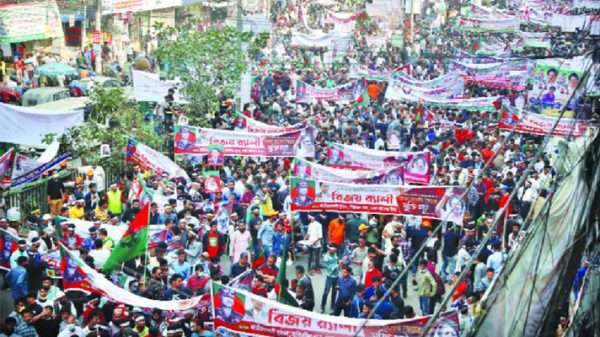 মহান বিজয় দিবস উপলক্ষে রাজধানীতে গতকাল রবিবার বর্ণাঢ্য বিজয় শোভাযাত্রা করেছে বিএনপি। এই র্যালিকে গণতন্ত্র পুনরুদ্ধার আন্দোলনের শুভ সূচনা আখ্যায়িত করে দলটির মহাসচিব মির্জা ফখরুল ইসলাম আলমগীর বলেন, এ র্যালি