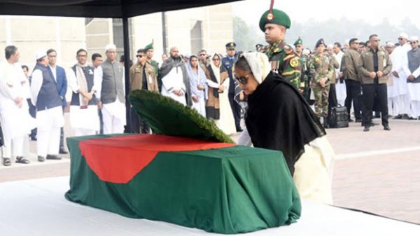 প্রধানমন্ত্রী শেখ হাসিনা আজ সকালে জাতীয় সংসদ ভবনের দক্ষিণ প্লাজায় বগুড়া থেকে নির্বাচিত আওয়ামী লীগের সংসদ সদস্য মরহুম আব্দুল মান্নানের কফিনে পুষ্পার্ঘ্য অর্পণের মাধ্যমে তার প্রতি শ্রদ্ধা জানিয়েছেন। জাতীয় পতাকায়