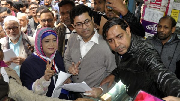 ঢাকা দক্ষিণ সিটি কর্পোরেশন নির্বাচনে বিএনপি সমর্থিত মেয়র প্রার্থী ইঞ্জিনিয়ার ইশরাক হোসেনের বাসায় গিয়ে নৌকায় ভোট চাইলেন আওয়ামী লীগের সমর্থিত প্রার্থী ব্যারিস্টার শেখ ফজলে নূর তাপস। শনিবার রাজধানীর আরকে মিশন
