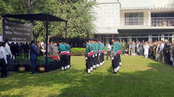 সাবেক পররাষ্ট্র সচিব সৈয়দ মোয়াজ্জেম আলীকে বুধবার রাষ্ট্রীয় অতিথি ভবন পদ্মায় রাষ্ট্রীয় গার্ড অব অনার প্রদান করা হয়েছে। এর আগে সকালে সেখানে তার প্রথম নামাজে জানাজা অনুষ্ঠিত হয়। পররাষ্ট্রমন্ত্রী ড.