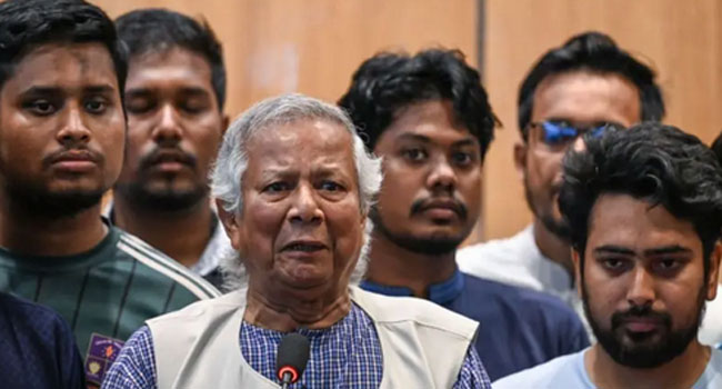 শেখ হাসিনা সরকারের পতনের তিন দিন পর বৃহস্পতিবার অন্তর্বর্তী সরকারের প্রধান উপদেষ্টা হিসেবে শপথ নিলেন নোবেলজয়ী ড. মুহাম্মদ ইউনূস। বঙ্গভবনের দরবার হলে রাষ্ট্রপতি মো: সাহাবুদ্দিনের কাছে তিনি শপথ গ্রহণ করেন।