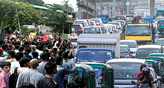 কোটাবিরোধী আন্দোলনে এক দফা দাবিতে শুরু হয়েছে আজকের ‘বাংলা ব্লকেড’ কর্মসূচি। পূর্বঘোষিত কর্মসূচি অনুযায়ী রাজধানীর সায়েন্স ল্যাবরেটরি মোড় অবরোধ করেছেন সাত কলেজ শিক্ষার্থীরা। বুধবার (১০ জুলাই) সকাল সাড়ে ১০টায় ঢাকা