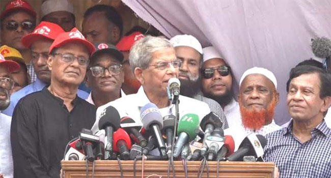 বিএনপির মহাসচিব মির্জা ফখরুল ইসলাম আলমগীর বলেছেন, ‘বর্তমান সরকার মুখে গণতন্ত্রের কথা বলে ভিন্ন কায়দায় ও ছদ্মবেশে একদলীয় শাসন ব্যবস্থা চাপিয়ে দিচ্ছে।’ সোমবার (২৫ মার্চ) রাজধানীর নয়াপল্টনে বিএনপির কেন্দ্রীয় কার্যালয়ে সামনে