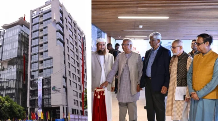 রাজধানীর আগারগাঁও এলাকায় মাইক্রোক্রেডিট রেগুলেটরি অথরিটি (এমআরএ) ভবন উদ্বোধন করেছেন প্রধান উপদেষ্টা ড. মুহাম্মদ ইউনূস। প্রধান উপদেষ্টা ভবনটির উদ্বোধন করলেও ফলকে তার নাম ছিল না। আজ শনিবার সকাল সাড়ে ১০টায়