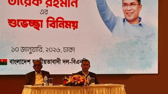 গণমাধ্যমের সাংবাদিকদের সঙ্গে শুভেচ্ছা বিনিময় করছেন বিএনপির চেয়ারম্যান তারেক রহমান। শনিবার (১০ জানুয়ারি) বেলা সোয়া ১১টায় রাজধানীর বনানীর হোটেল শেরাটনের গ্র্যান্ড বলরুমে এই অনুষ্ঠান শুরু হয়। অনুষ্ঠানে দেশের জাতীয় দৈনিকের