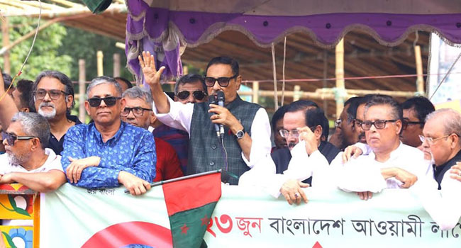 বিএনপির সরকার পতনের আন্দোলনের হুমকির জবাবে আওয়ামী লীগ সাধারণ সম্পাদক এবং সড়ক পরিবহন ও সেতুমন্ত্রী ওবায়দুল কাদের বলেছেন, আওয়ামী লীগ কচু পাতার উপর শিশির বিন্দু নয় যে টোকা দিলে পড়ে