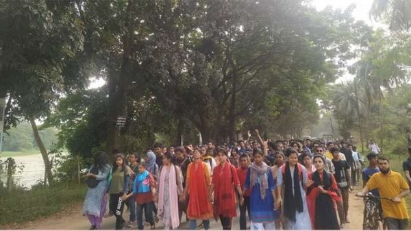 ক্যাম্পাস বন্ধের মধ্যেই জাবিতে বিক্ষোভে অংশ নিয়েছে শত শত বিক্ষুব্ধ শিক্ষার্থী। দুপুর একটায় রেজিষ্টার ভবনের সামনে থেকে বিক্ষোভ মিছিল শুরু হয়। মিছিলে ভিসির পদত্যাগ সহ তার বিরুদ্ধে ওঠা দুর্নীতির অভিযোগ
